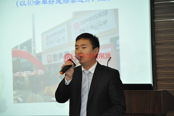 晚上,容聲集成吊頂事業(yè)部華中大區(qū)經理董進波先生向在座的經銷商展示所在區(qū)域的終端之變、活動之變、渠道之變。聲情并茂的演講獲得了在場經銷商的熱烈歡迎。