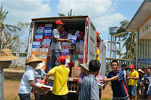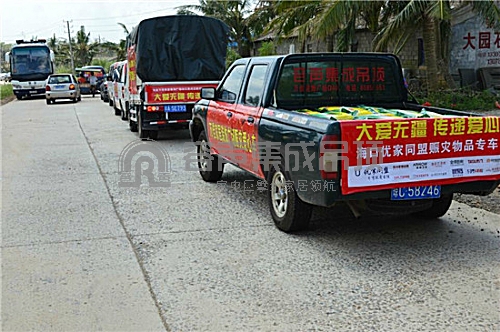 大愛無疆,傳遞愛心。由??谌萋暯M織的優(yōu)家同盟集合了數(shù)十輛貨車裝載著大米、帳篷、方便面、礦泉水等賑災(zāi)物資運(yùn)往災(zāi)區(qū)。