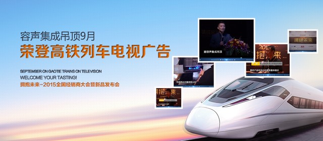 隨著“擁抱未來”--2015全國經(jīng)銷商大會暨新品發(fā)布會順利舉辦,容聲集成吊頂榮登高鐵列車電視廣告。
