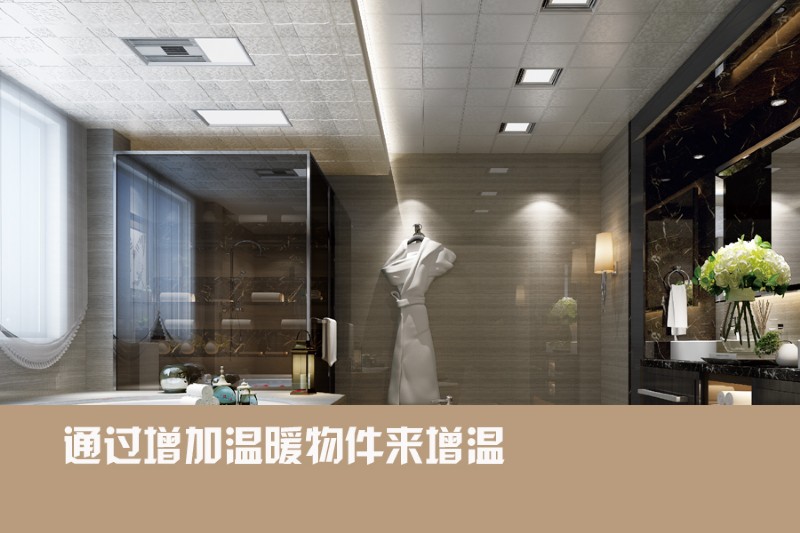 通過(guò)增加溫暖物件來(lái)增溫:冬季來(lái)到,衛(wèi)浴間可以增加一些看起來(lái)就很溫暖的物件,比如針織品等??梢詫⒃〗?、毛巾、浴袍等針織品換成更蓬松柔軟的材質(zhì),如果空間夠大,在洗手臺(tái)前安放毛毯或防潮墊,保證觸覺(jué)和腳下溫暖。