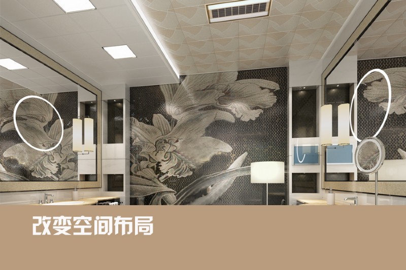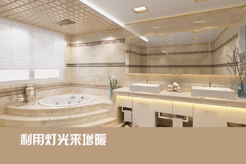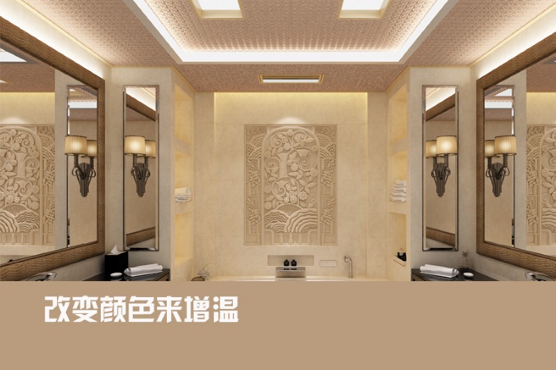 利用燈光來(lái)增溫:燈光也是改變?cè)∈曳諊闹匾ぞ摺|S色的燈光都容易制造出朦朧、柔美的感覺(jué),可以通過(guò)增加吊燈組數(shù)、增加壁燈射燈等氣氛燈,打造多重?zé)粼?。在更換燈光時(shí),注意燈泡瓦數(shù),亮度不宜過(guò)低。同時(shí)可選擇漂亮適合的燈罩,讓浴室更具風(fēng)情。