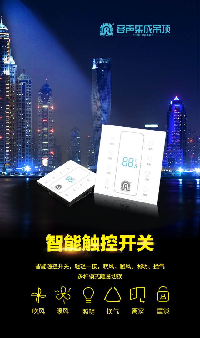智能觸控開關(guān),輕輕一按,吹風(fēng)、暖風(fēng)、照明、換氣多種模式隨意切換。