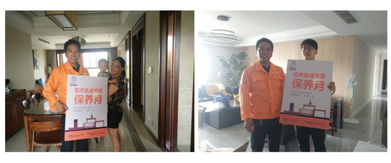 針對吊頂和電器不易保養(yǎng)問題,江陰容聲團(tuán)隊特地開展了保養(yǎng)月活動,本次活動從策劃到執(zhí)行,江陰容聲團(tuán)隊投入了大量人力物力,從邀約到活動過程,包括上門服務(wù)的著裝、注意事項、服務(wù)標(biāo)準(zhǔn)等都做了統(tǒng)一規(guī)定,確保為客戶展示專業(yè)、高效的容聲集成吊頂團(tuán)隊形象!