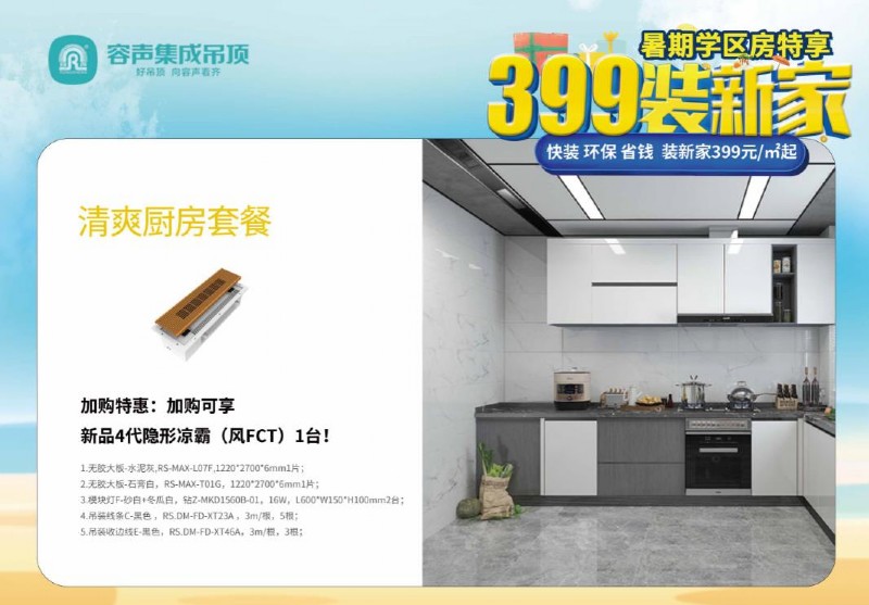 最適合在暑假進(jìn)行裝修的新房,莫過于學(xué)區(qū)房了——夏天散味快,施工時(shí)間長,暑假裝完,開學(xué)直接入住,豈不快哉!對(duì)此,本次活動(dòng)容聲特別推出了399元/㎡的暑期學(xué)區(qū)房特惠套餐,為廣大學(xué)子送福利!