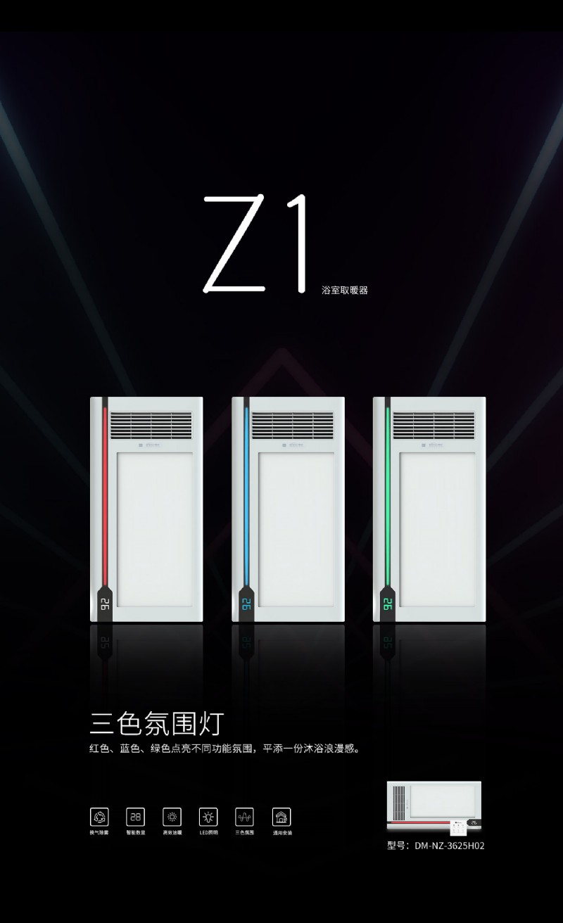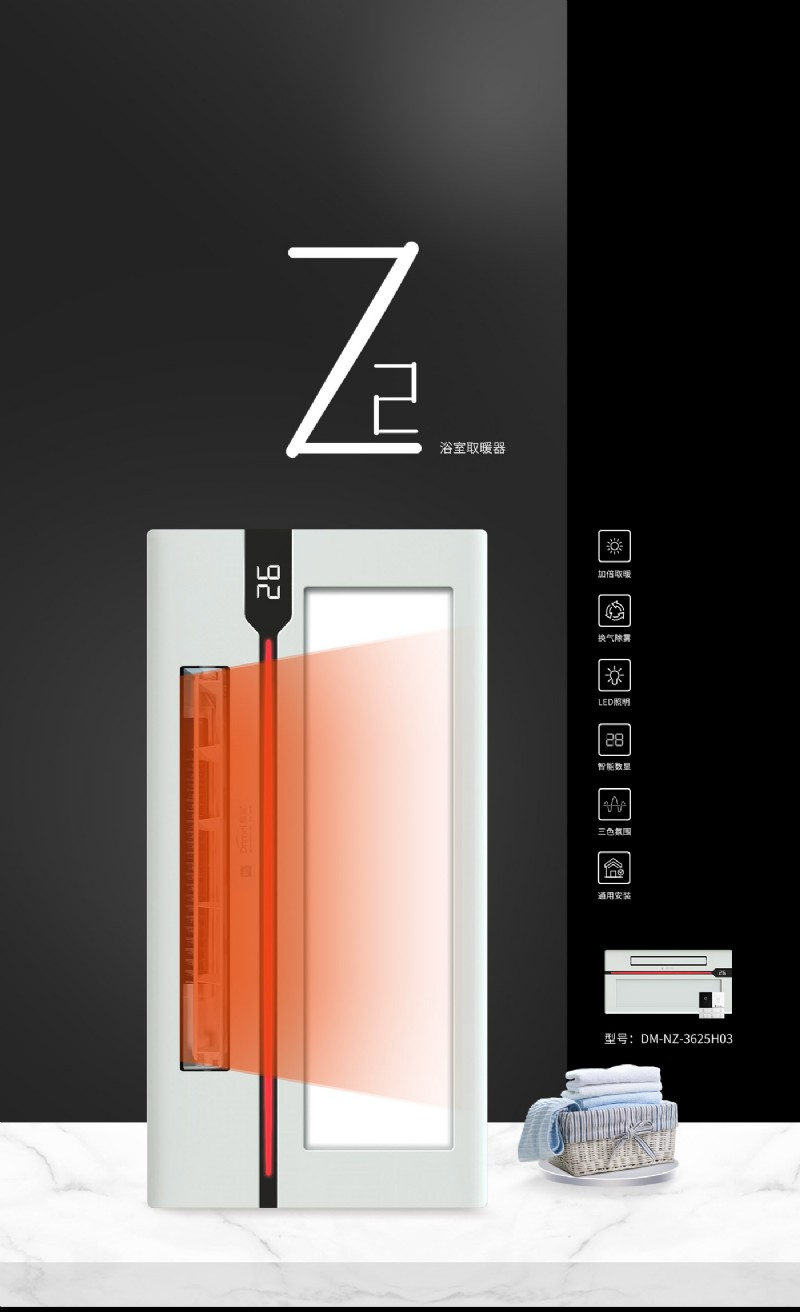 Z系列工程取暖則更為高端智能,擁有取暖、換氣、照明、溫顯、氛圍燈五大功能,面板設(shè)計美觀大氣,智能感十足,無論是扣板還是大板,都能完美適配,適用于中高端房企工程項目。