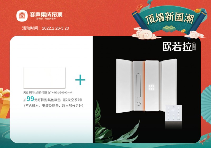 二號國潮套餐為大家準(zhǔn)備的是新品歐若拉+天空系列大扣板的特惠廚衛(wèi)套餐,簡約百搭,性價比王者!