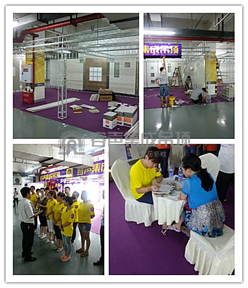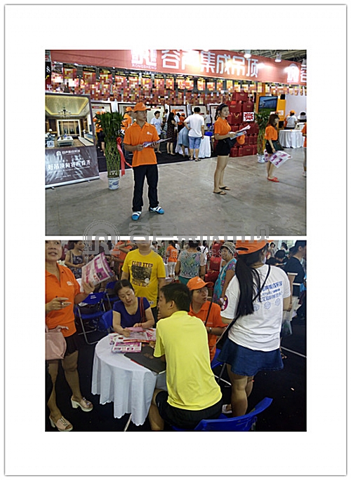 武漢容聲集成吊頂工作人員七夕當天身穿橙色上衣。他們激情飽滿地為每一位到場的客人服務。干勁十足、挑戰(zhàn)極限是他們的工作宗旨。